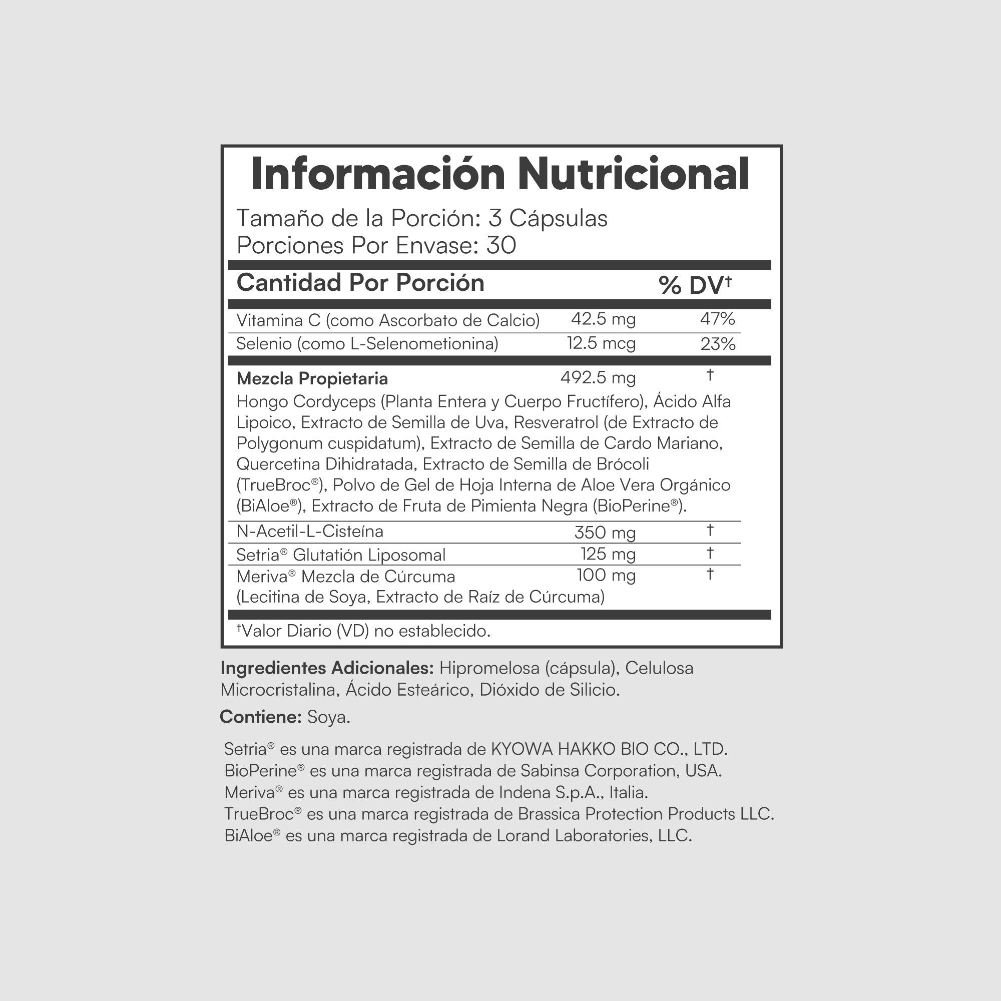 - Potenciado por una mezcla antioxidante patentada 14 en 1 con cordyceps, resveratrol, cardo mariano y extracto de
